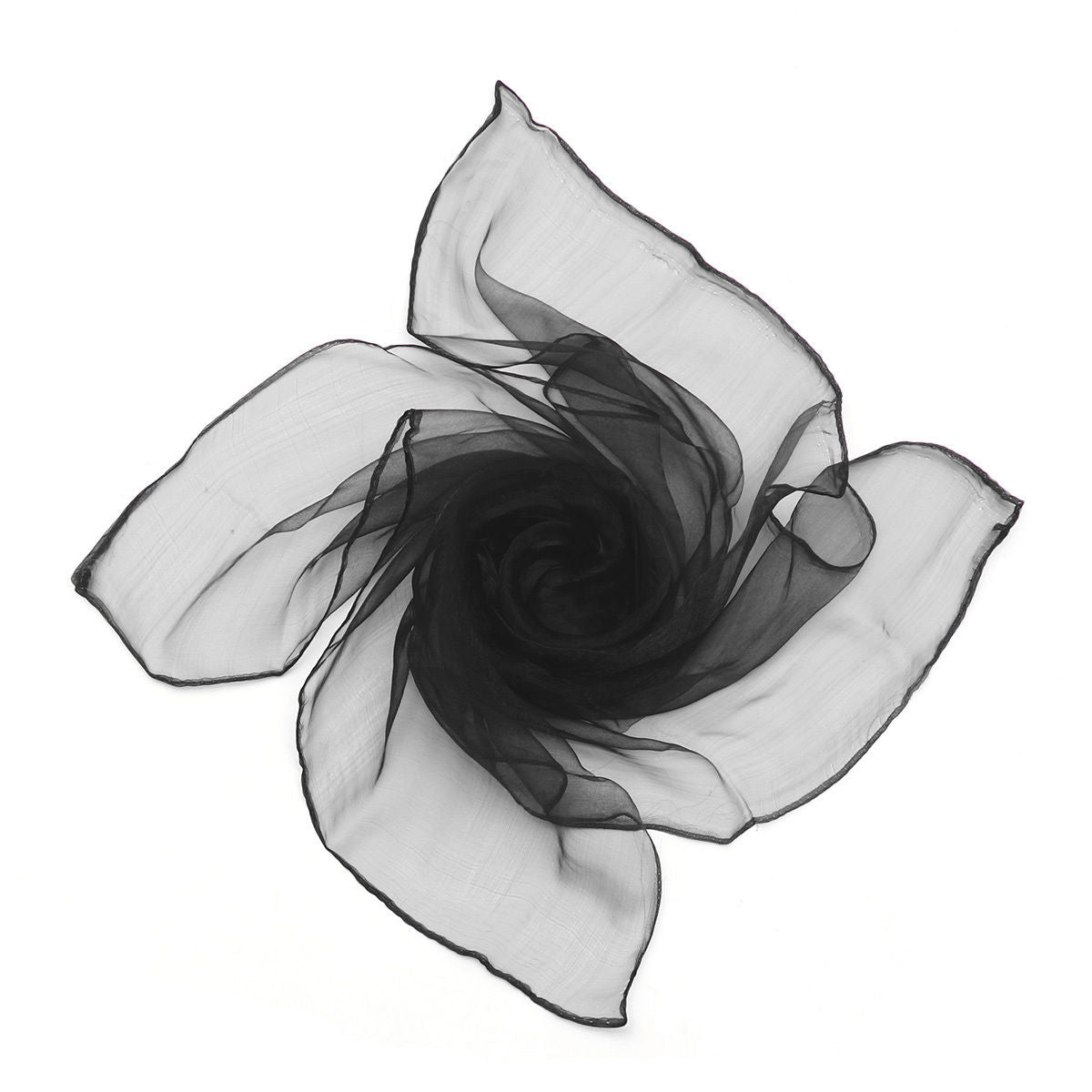 - Folds into a place The translucent fabric makes a 23 inch square with hemmed edges of retro sophistication. When you don't wear it, the scarf folds wonderfully into a square so you can easily store it away and avoid unwanted creases and kinks.