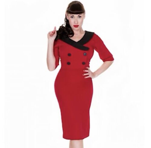 Lindy Bop Deanna Crimson Red & Black Vintage Style Dress | Size 10