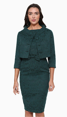 LINDY BOP Maybelle Dress & Jacket Set - Emerald Green Brocade | Size 16